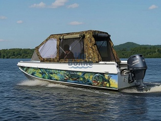 Прозрачные боковины и окно над ветровым стеклом обеспечивают отличный обзор и естественное освещение. Легкий доступ к кормовой части лодки через заднюю откидную дверь. Вентиляционные клапаны и боковые молнии обеспечивают комфорт и удобство. Чехол-банан для надежной защиты и удобного хранения.