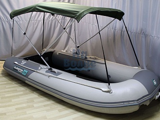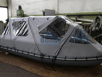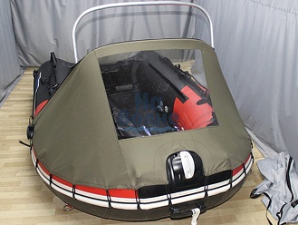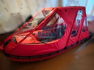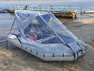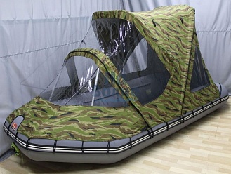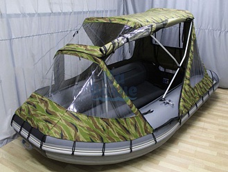 Тент представляет собой крышу (козырек) специального кроя, сшитый из прочной ткани и натягивающийся над кокпитом для защиты пассажиров и вещей в лодке от прямых солнечных лучей и дождя