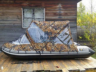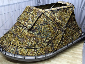 Полноценный ходовой тент на основе комбинированного тента и тента трансформера. Особенностью является наличие люка-бойницы в крыше для охоты из лодки