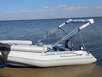 Усиленный носовой тент с дополнительной дугой - таргой, защитит вас, ваших пассажиров и вещи от брызг. Носовой тент и дуга для троллинга в одном комплекте